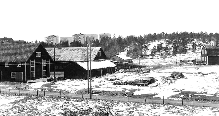 Bo gård med Näset i bakgrunden. Foto: Sten Schüssler 1961