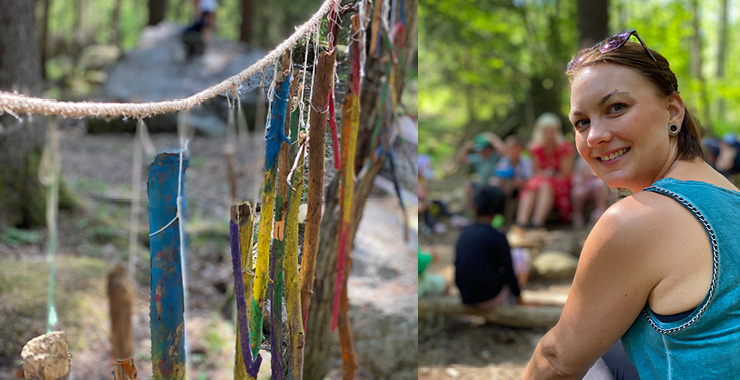 Vi fick hänga med barnen till deras plats i skogen efter morgonsamlingen.