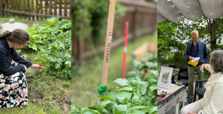Här har föreningen gått från urskog till ekolund. Tidigare var det ogenomträngliga buskar och brännässlor. Nu är det en samlingspunkt med en pergola, gräsmatta och odlingsbäddar för rabarber och potatis, dill och gräslök, som alla medlemmar får använda till sin matlagning. Dessutom finns flera odlingslådor som enskilda medlemmar använder.