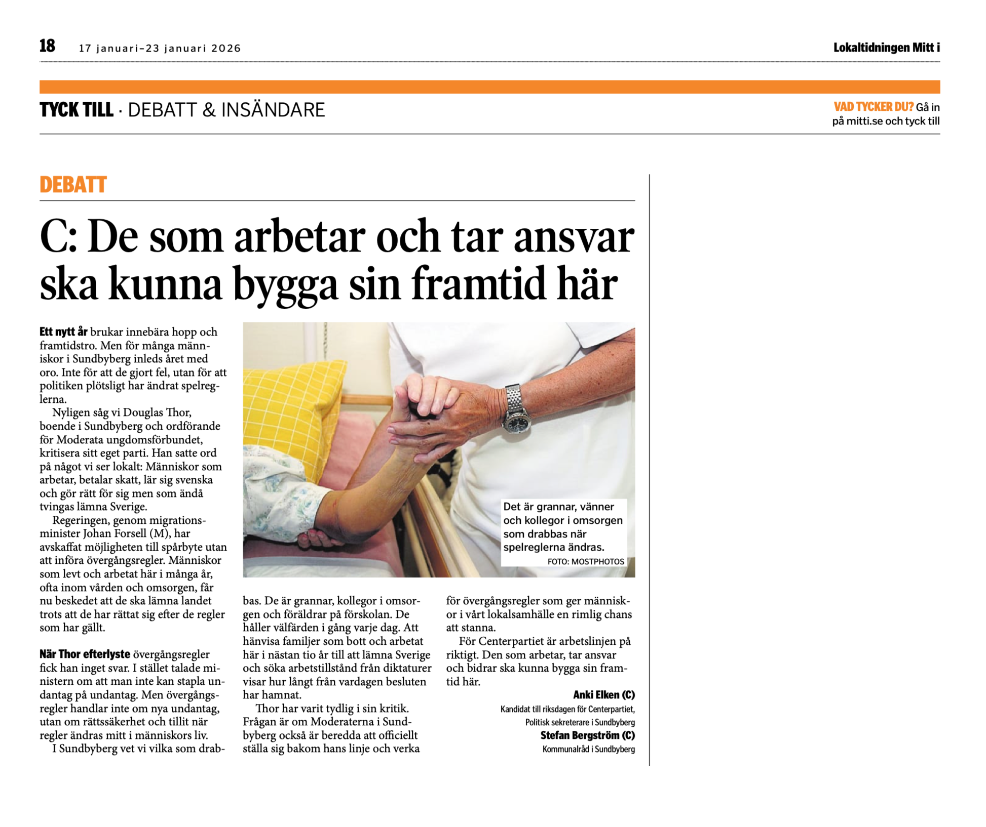 Denna debattartikel publicerades i januari 2026 i Mitt i Sundbyberg, nummer 3 (17–23 januari).