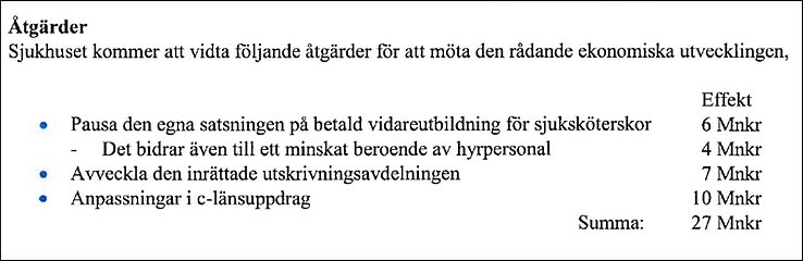 Dessutom kommer Sjukhusstyrelsen och Akademiska sjukhuset att gå in i 2019 med ytterligare effektiviseringskrav. Exakt hur mycket är inte presenterat ännu, men det är ingen tvekan att det kommer.